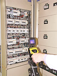 An elektrischen und elektronischen Einrichtungen und Geräten kann man mit Wärmebildaufnahmen im Betrieb unter Last Überhitzungen aufdecken, die verschiedene Ursachen haben können: schlechte Anschlüsse, Überlastungen, ungleiche Belastung der Phasen, Unterdimensionierung der Teile usw…